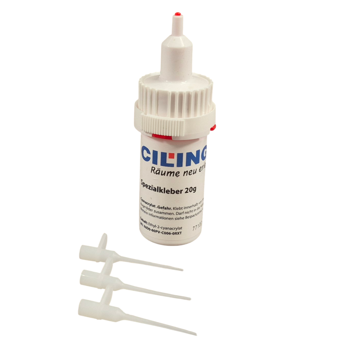 Der CILING Spezialkleber ist speziell für die Montage von Zubehör für CILING-Spanndecken entwickelt. Mit seiner präzisen Dosierbarkeit und starken Haftkraft eignet er sich ideal für das Verkleben von Ringen, Kedern und weiteren Montagepunkten.
